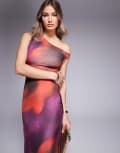 Missyempire double layered slinky off shoulder maxi dress in purple and red blurred flower print