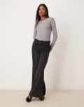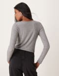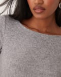 Mango mixed ribbed long sleeve top in grey