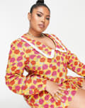 Never Fully Dressed Plus oversized collar mini dress in yellow floral