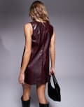 ASOS DESIGN v neck leather look shift dress in burgundy snake print