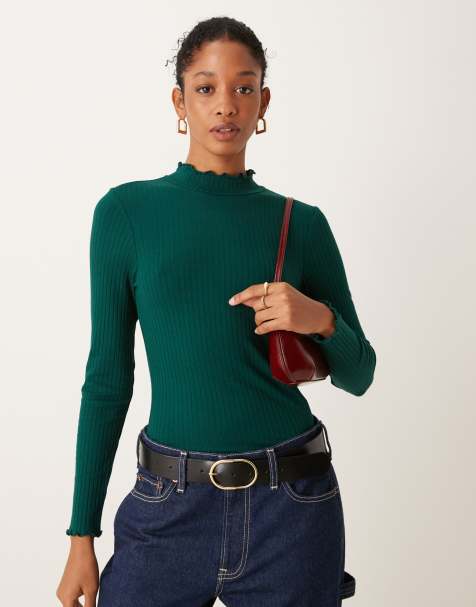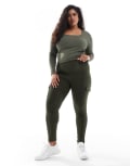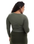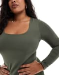 ONLY Curve 2 way long sleeve square neck top in dark green