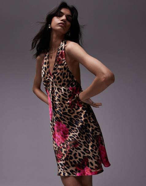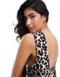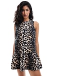 ASOS DESIGN denim dropwaist mini dress in leopard