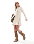 ASOS DESIGN scarf detail V neck mini dress in cream