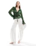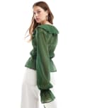 ASOS DESIGN sheer ruffle chiffon blouse with tie front in green