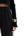 4th & Reckless side stripe wide leg trousers in black pinstripe
