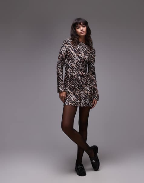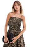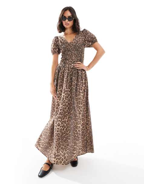 ASOS DESIGN poplin shirred maxi dress in leopard print