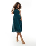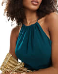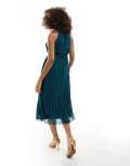 ASOS DESIGN pleated chiffon midi dress with halter neck in bottle green