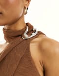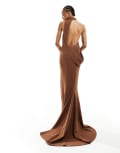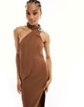 ASOS DESIGN Tall high neck maxi dress with silver neck trim in mocha