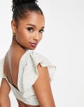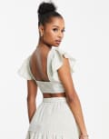 Collective the Label Petite frill shoulder crop top co-ord in sage ditsy floral