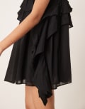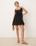 ASOS DESIGN scoop neck ruffle mini dress with tie straps in black