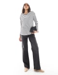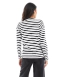 Mamalicious Maternity long sleeved waffle jersey top in mono stripe