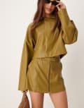 ASOS DESIGN faux leather zip through tailored micro skirt co-ord in olive