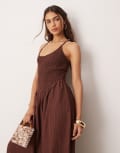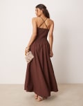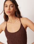 ASOS DESIGN scoop neck crinkle maxi dress with cross back in chocolate