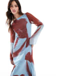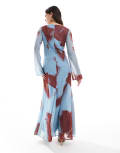 ASOS DESIGN floral placement print godet hem maxi dress in blue