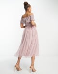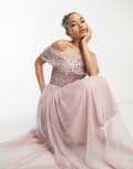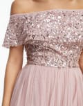 Beauut Bridesmaid bardot embellished midi dress in frosted pink