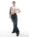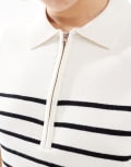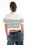 Brave Soul cropped knitted t-shirt with collar in cream and black stripe