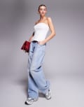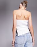 Kaiia exclusive cotton rich ribbed bandeau side split top in white