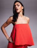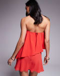 ASOS DESIGN bandeau asymmetric contrast fabric bias mini dress in red