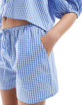 Esmee Exclusive drawstring beach shorts in blue and white gingham