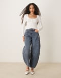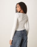 Gina Tricot jersey long sleeve with concealed front button detail in off white