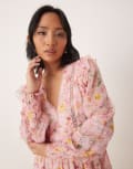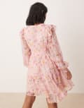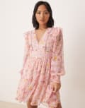 Vila Petite ladder lace frill detail mini dress in peach floral print