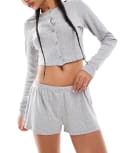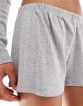 Monki co-ord cotton pointelle jersey shorts in grey melange