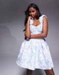 ASOS LUXE jacquard scrunch strap mini skater dress in floral print