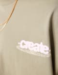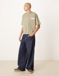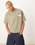 ASOS DESIGN boxy oversized t-shirt with front and back graphic in light khaki