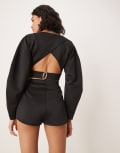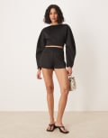 ASOS DESIGN co-ord hot pant shorts in black in scuba-style fabric