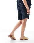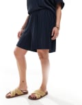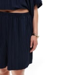 Vero Moda Curve plisse short co-ord in navy