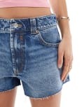 ASOS DESIGN Petite denim relaxed short in midwash blue