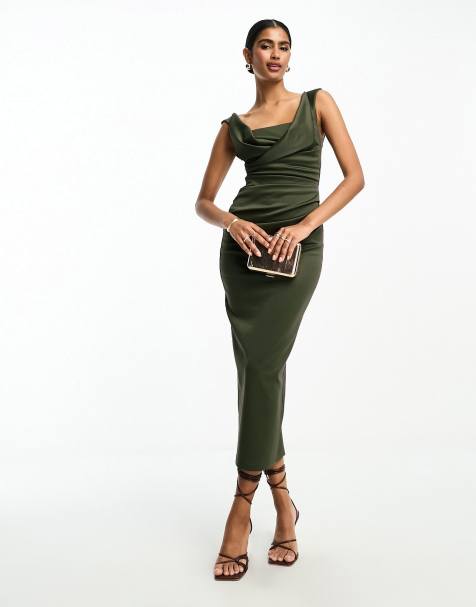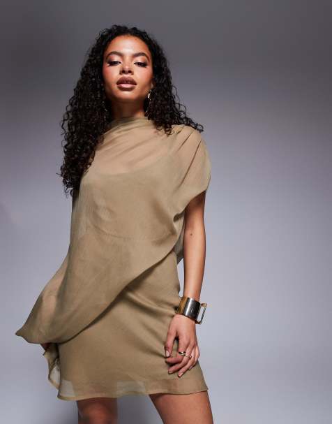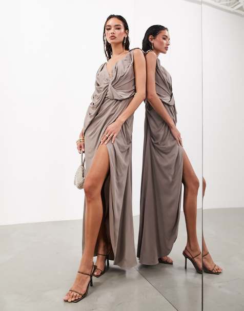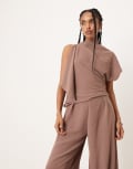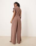ASOS DESIGN asym drape neck jumpsuit in deep taupe