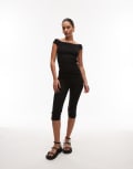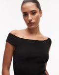 ARKET structured knit off shoulder top with sweetheart neckline in black