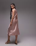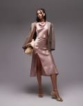 & Other Stories sleeveless hammered satin midaxi dress with drape detail and thigh split in light pink