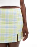 ASOS DESIGN poplin split front mini skirt in green pop check co ord