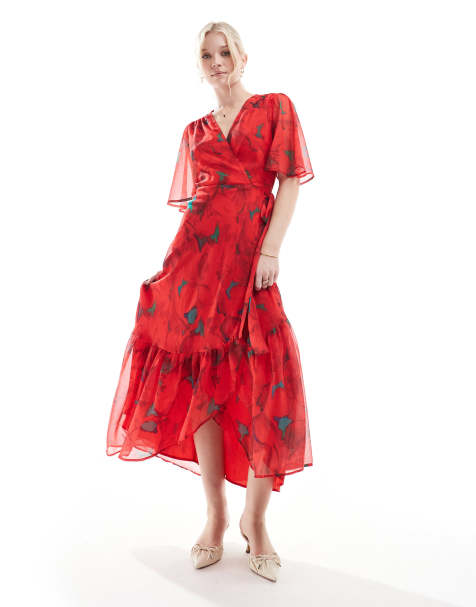 Topshop halter neck maxi dress in red boutique print