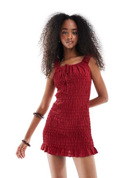 Daisy Street x Molly Mcfarlane mini shirred dress in red