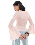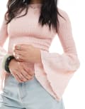 ASOS DESIGN shirred angel sleeve top in pink