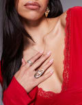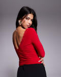 Fashionkilla double sculpted slinky v-neck lace detail top in red