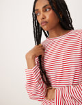 ASOS DESIGN long sleeve tee co-ord in red and white stripe