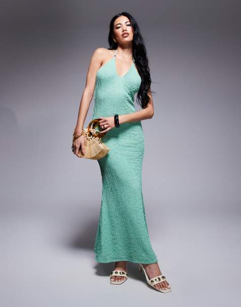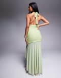 ASOS DESIGN highneck maxi dress with sheer skirt in green