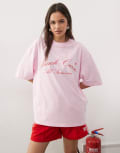 COLLUSION front graphic acid wash tee in pink