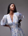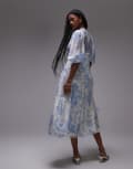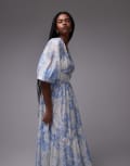& Other Stories midaxi dress with volume sleeves and shirred bodice detail in blue floral print