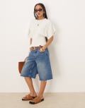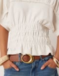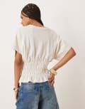 ASOS DESIGN textured slubby shirred waist tee in cream