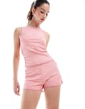 Cotton On striped rib ruffle co-ord sleep shorts in pink
