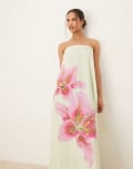 ASOS DESIGN cupro bandeau maxi dress in green and pink tropical floral print