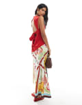 ASOS DESIGN drape cowl neck top with open tie back detail in red