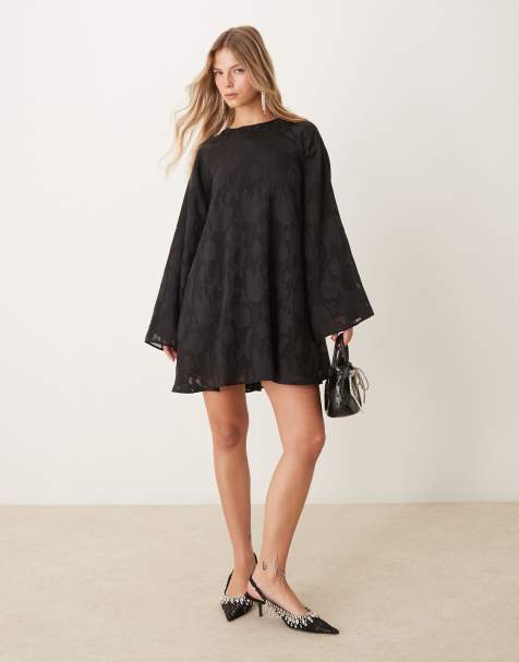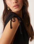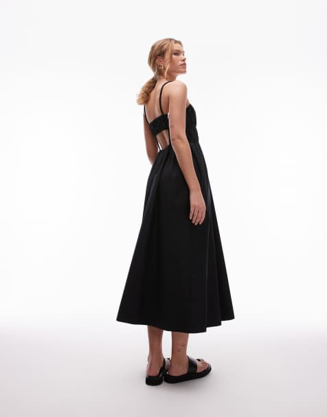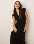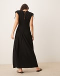 ASOS DESIGN ruched shoulder drop waist linen look midi dress in black