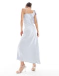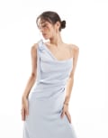 ASOS DESIGN Curve Bridesmaids slash neck crepe t-shirt sleeve minimal drape maxi dress in light blue