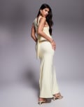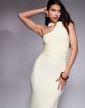 Kaiia exclusive double layered slinky one shoulder scarf detail side split maxi dress in lemon